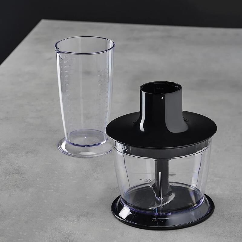 Тип: Погружной Мощность, Вт: 1500 Плавная регулировка скорости: Да Количество скоростных режимов: 9 Режим TURBO: Да Импульсный режим работы: Да Защита от перегрузки: Да Мини-измельчитель: Да Емкость мини-измельчителя, л: 0.5 Венчик для взбивания: Да Мерный стакан: Да Мерный стакан, л: 0.7 Насадка-блендер: Да Материал погружной части насадки-блендера: Нержавеющая сталь STEEL PRO Дополнительные насадки: Для картофельного пюре Аксессуары в комплекте: насадка для картофельного пюре, венчик, измельчитель, мерный стакан Материал корпуса: Пластик Длина электрошнура, м: 1.1 Цвет: Черный