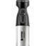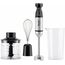 Блендер погружной. Мощность: 1000 вт, Плавная регулировка скорости, Управление: механическое, Материал корпуса: нержавеющая сталь/пластик, Материал погружной части: нержавеющая сталь, Емкость измельчителя: 500 мл, Емкость мерного стакана: 700 мл, Венчик для взбивания, Мерный стакан, Длина сетевого шнура: 110см, Измельчитель, Цвет: Черный/серебро
