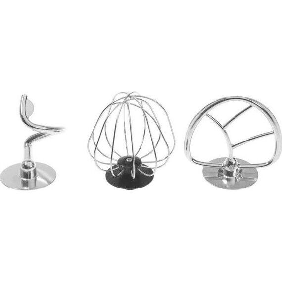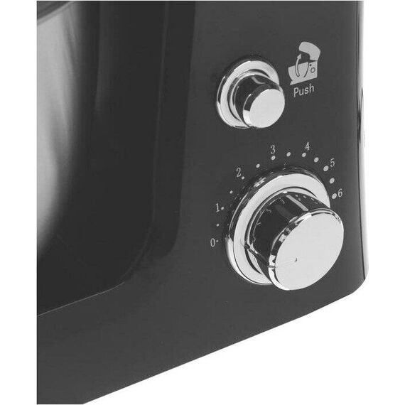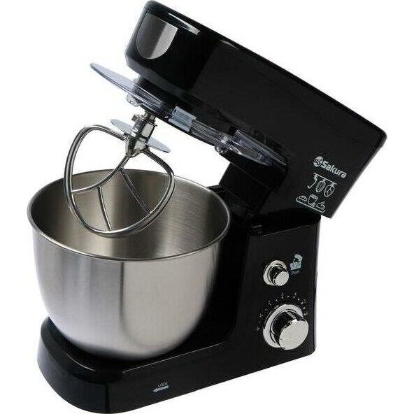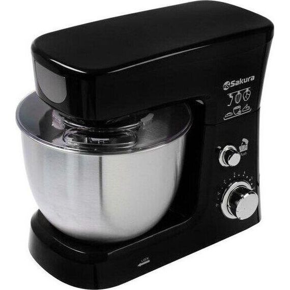 Миксер настольный с планетарным вращением насадок, максимальная мощность 1000 Вт, 6 скоростей работы, чаша из нержавеющей стали (3,5л) с прозрачной крышкой и отвертсием для добавления продуктов в процессе, 3 насадки (объемный венчик, плоский венчик и крюк), лопаточка в комплекте.