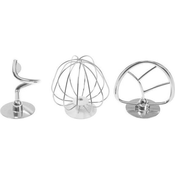 Миксер настольный с планетарным вращением насадок, максимальная мощность 1000 Вт, 6 скоростей работы, чаша из нержавеющей стали (3,5л) с прозрачной крышкой и отвертсием для добавления продуктов в процессе, 3 насадки (объемный венчик, плоский венчик и крюк), лопаточка в комплекте.