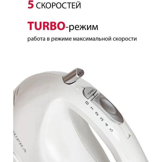 Мощность, Вт. 500 Тип управления механическое Количество скоростей 5 Турборежим есть Чаша Материал чаши пластик Объем чаши, л. 2,5 Комплектация Комплектация миксер, насадки для взбивания яиц и крема, насадки для замеса тяжелого теста, инструкция на русском языке, гарантийный талон Корпус Материал корпуса пластик Цвет белый Габариты и вес Вес в упаковке, кг. 1.7 Размер упаковки, см. (ВхШхГ) 21x31.5x22 Энергопотребление Электропитание, в., Гц. 220-240, 50