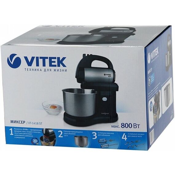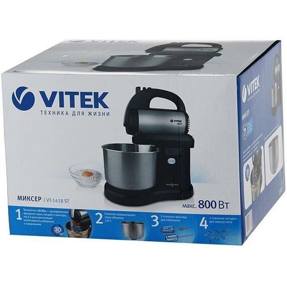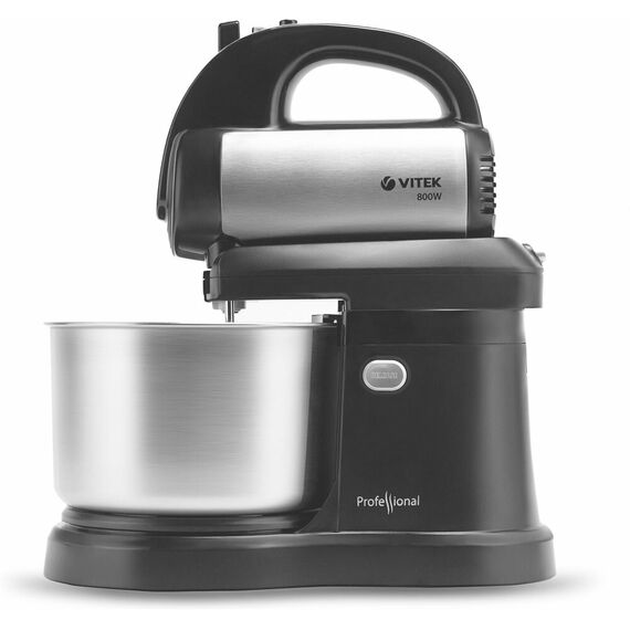 Миксер ручной с чашей. Мощность: 800 вт, Число скоростей: 5, Турборежим, Венчик для взбивания: 2, Крюки для замешивания теста, Количество насадок: 4, Вращение чаши, Материал чаши: сталь, Объем чаши: 2,8 литра, Кнопка отсоединения насадок, Материал корпуса: сталь, Лопатка в комплекте, Длина сетевого шнура: 120 см, Цвет: Черный/серебро