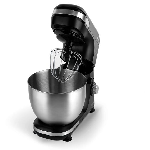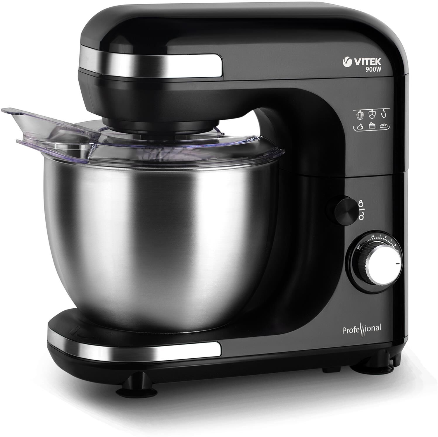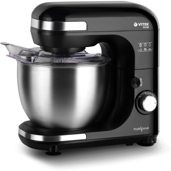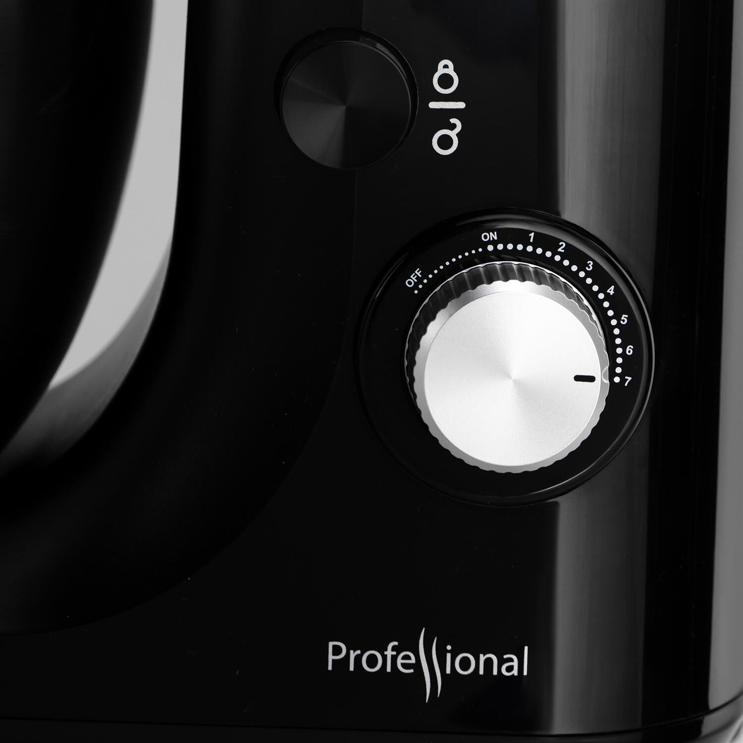 Планетарный миксер. Мощность: 900 вт, Число скоростей: 7, Венчик для взбивания: 1, Крюки для замешивания теста, Количество насадок: 3, Защитная крышка на чашу, Материал чаши: нержавеющая сталь, Объем чаши: 5 литров, Материал корпуса: пластик, Вес: 3,75 кг, Длина сетевого шнура: 100 см, Цвет: Черный.
