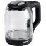 Емкость: 1,7л, мощность : 2200Вт, корпус из закаленного стекла, модель оснащена многоуровневой защитой: автоматическим отключением при закипании, отключением при недостаточном количестве воды, прибор установлен на удобную подставку с возможностью поворота на 360 градусов и с отделением для хранения шнура.