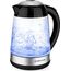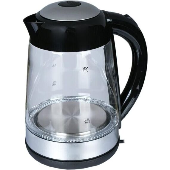 Максимальная мощность 2200 Вт.. Максимальный объем 1,7 литра. Корпус из высокопрочного термостойкого стекла. Внутренняя подсветка. Автоотключение при закипании воды. Отключение при отсутствии воды. Моющийся фильтр. Противоскользящее основание. Электропитание 220-240 В., ~50-60 Гц..