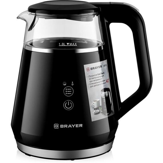 Максимальная мощность 1100 Вт Объём 1 л Сенсорное управление Корпус из высокопрочного термостойкого стекла с пластиковым покрытием Cool Touch, которое остается холодным при нагревании Функции кипячения и подогрева воды для разных сортов чая (40-100° С) Поддержание заданной температуры в течение 2-х часов Автоотключение при закипании воды Отключение при отсутствии воды Электропитание 220-240 В, ~ 50-60 Гц