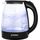 220-240В 50Гц 1300-1650 Вт. Мощность: 1300-1650 Вт. Объём: 1.8 л. Стеклянный корпус. Скрытый дисковый нагревательный элемент. Вращение на 360˚. Индикатор уровня воды. Внутренняя LED подсветка. Защита от перегрева и включения без воды. Световая индикация включения. Время закипания: 3-6 мин. Автоотключение при закипании. Отсек для хранения шнура. Mатериал корпуса: термостойкое стекло со вставками из пластика и нержавеющей стали.