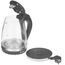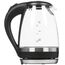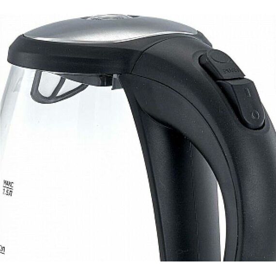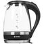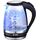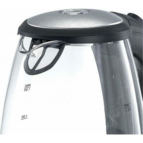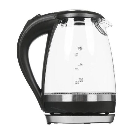 Макс. мощность 2200 Вт. Объем 1,5л. Закрытый нагревательный элемент из нерж. стали. Корпус из жаропрочного стекла. Вращение корпуса на 360°. Шкала уровня воды. Внутренняя LED-подсветка. Многоуровневая защита: автоматич. отключение при закипании, отключение при снятии чайника с базы, отключение при недостаточном количестве воды.