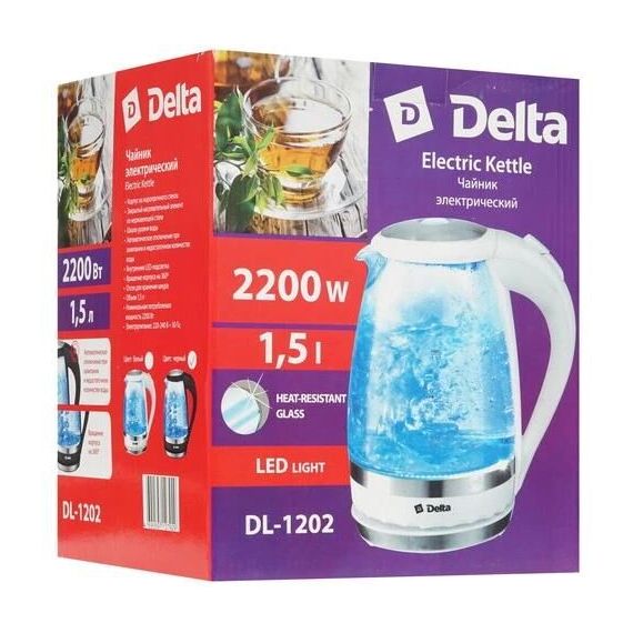 Чайник электрический DELTA DL-1202 (1,5л. стекло)