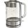 Корпус из термостойкого стекла • Закрытый нагревательный элемент из нержавеющей стали • Автоматическое отключение при закипании • Блокировка включения без воды • Шкала уровня воды • Внутренняя LED-подсветка • Съемная крышка • Съемный фильтр • Вращение корпуса на 360° • Отсек для хранения шнура питания • Объем 1,7 л • Номинальная потребляемая мощность 2200 Вт • Диапазон номинальных напряжений: 220-240 В ~ 50 Гц