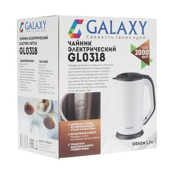 Чайник электрический GALAXY GL 0318 white (1.7л. металл/пластик)