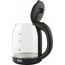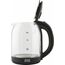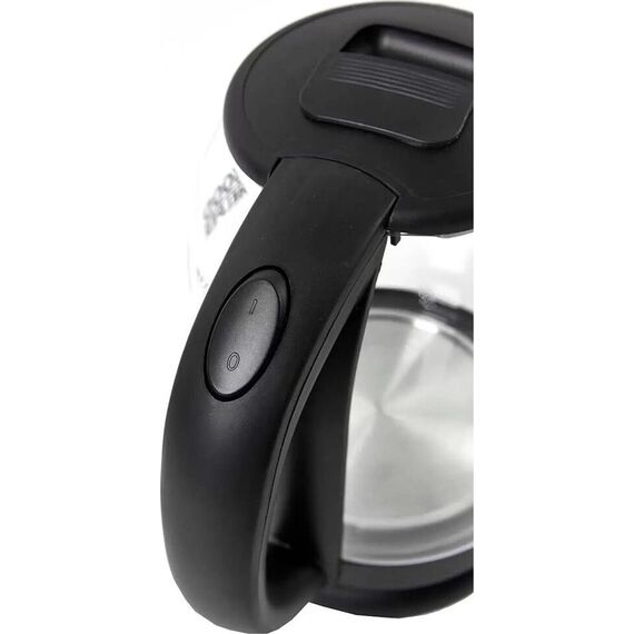 Объем 1.8л, Мощность 1500Вт, Автовыключение при закипании, Защита от включения без воды, Защита от перегрева, Поворачивающийся корпус (360°), Дисковый нагревательный элемент, Индикация включения, Светодиодная подсветка, Стеклянный корпус, Ручка и крышка ABS-пластик, Рабочее напряжение 220В / 50Гц.