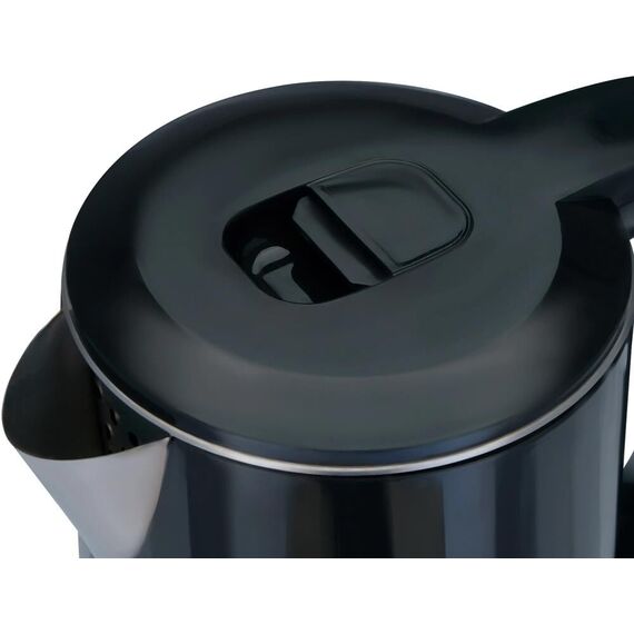 Основной цвет черный Дополнительный цвет серебристый Рисунок на корпусе нет Основные характеристики Объем 1.8 л Мощность 1800 Вт Количество стенок 2 Материал корпуса металл\пластик Тип нагревательного элемента скрытый нагревательный элемент Покрытие нагревательного элемента нержавеющая сталь Фильтр в носике есть Материал колбы нержавеющая сталь Материал фильтра нержавеющая сталь Особенности крышки открытие крышки на 90° Управление и функции Терморегулятор нет Плавная регулировка температуры нет Количество температурных режимов 1 Температура нагрева воды 100 °C Поддержание температуры нет Подставка с электронным управлением нет Вращение на подставке есть Длительное кипячение нет Отложенный старт нет Автоматическое отключение есть Защита автоотключение при закипании, автоотключение при отсутствии воды Управление со смартфона нет Приложение для управления нет Голосовой помощник нет Дисплей нет Световая индикация работы Звуковой сигнал нет