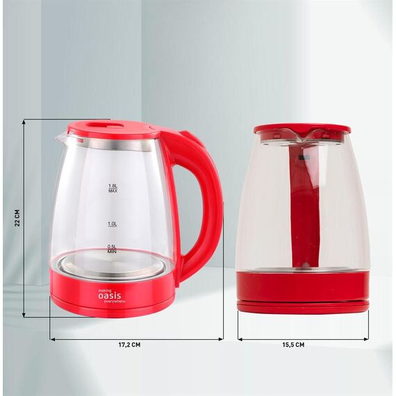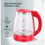 Объем 1,8 литра Корпус из термостойкого стекла Мощность 2000 Вт Автоотключение Защита от включения без воды 360° поворот корпуса Световая индикация Цвет Красный Материал полости Термостойкое стекло Параметры электросети, В/Гц 220/50 Мощность, Вт 2000 Объем, л 1,8