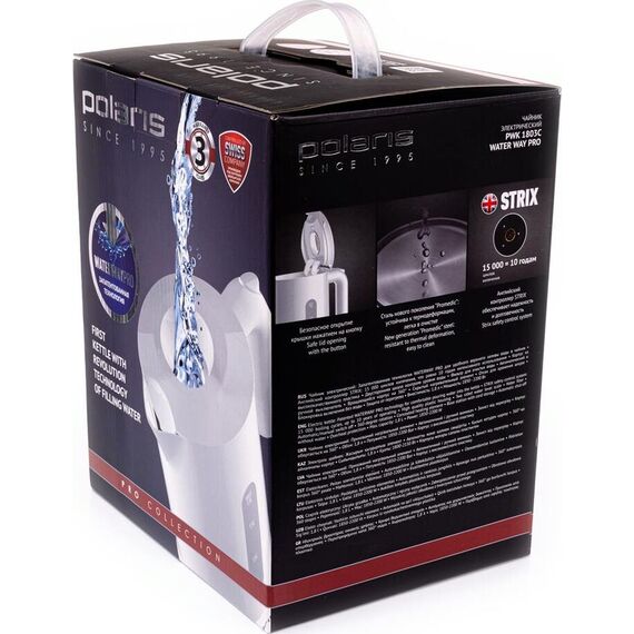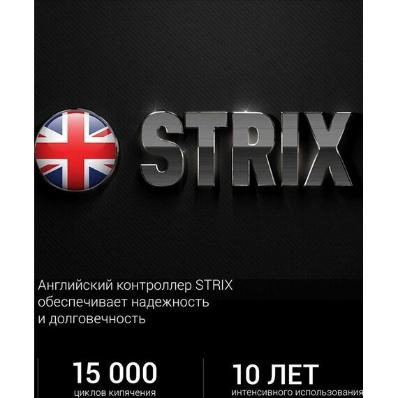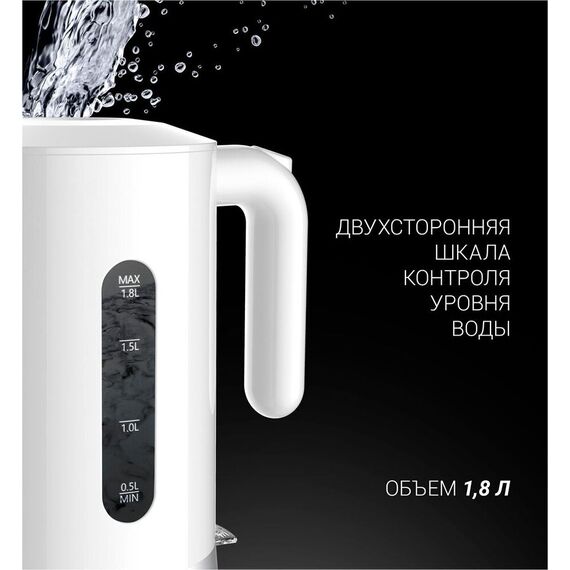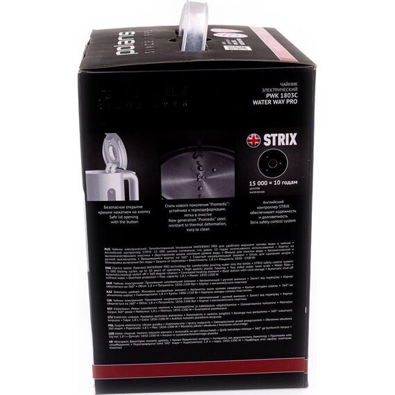 Мощность 1850 Вт, 2200 Вт.Объем, 1,80 л. Запатентованная технология “WATERWAY PRO” – наливайте воду в чайник без открытия крышки.Английский контроллер Strix обеспечивает 15 000 циклов кипячения, что равно 10 годам интенсивного использования.Корпус из высококачественного пластика.Индикатор уровня воды.Блокировка включения без воды.