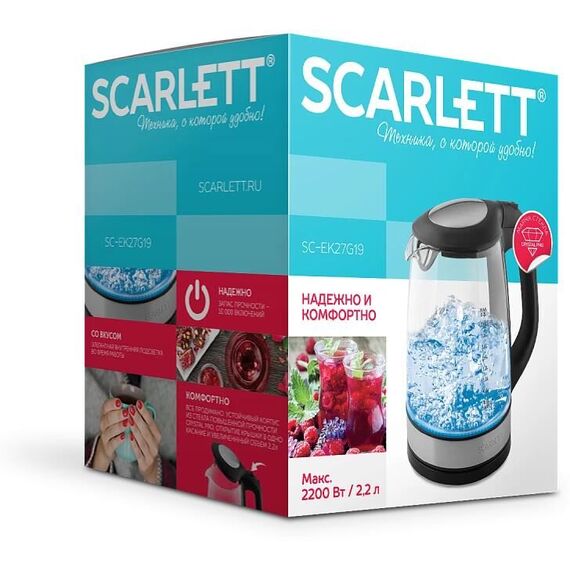 Чайник электрический SCARLETT SC-EK27G19 черное стекло 2,2л
