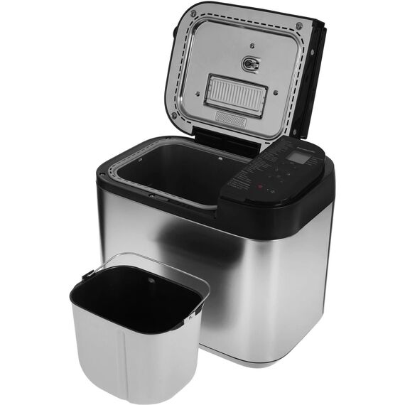 Керамическое покрытие формы для выпечки хлеба и лопатки. 30 автоматических программ: 11 программ выпечки хлеба. 4 программы приготовления без глютена. 8 программ замеса теста (включая тесто для пиццы и пельменей/вареников). Ручное управление - 3 программы. Каждая программа реализует определенный способ приготовления теста/хлеба и подходит для большого количества разнообразных рецептов. Программа приготовления варенья/джема. Программа приготовления фруктов в сиропе. Выпечка кексов. Выбор цвета корочки (3 варианта: светлый, средний, темный). Выбор размера буханки (3 варианта). Диспенсер для автоматического добавления дополнительных ингредиентов (емкость - 150 г). Диспенсер для дрожжей. Таймер отсрочки выпечки до 13 часов. Минимальное время выпечки хлеба 1 час 55 мин. Максимальное время выпечки хлеба 5 часов 40 мин. Антипригарное покрытие формы для выпечки . Лаконичный дизайн. Вес нетто - 7,5 кг. Потребляемая мощность - 505-550 Вт. Цвет: серебристый/черный.