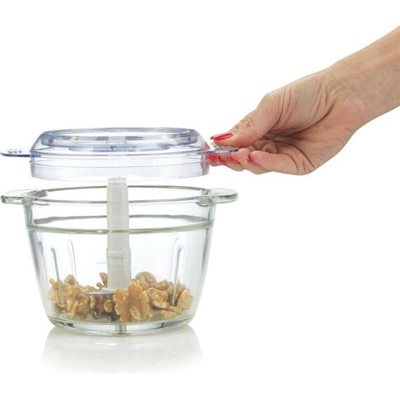 Измельчитель, Мощность мотора 500 Вт, Мотор переменного тока, Объем измельчителя 1 л, Материал: Пластик + металл, Насадки: Нож-измельчитель из нержавеющей стали, Габаритные размеры (шхвхг) 10,2 16,5 10,2 см, Размеры в упаковке (шхвхг) 10,6 19 10,6 см, Вес нетто: 1,3 кг, Вес брутто: 1,7 кг