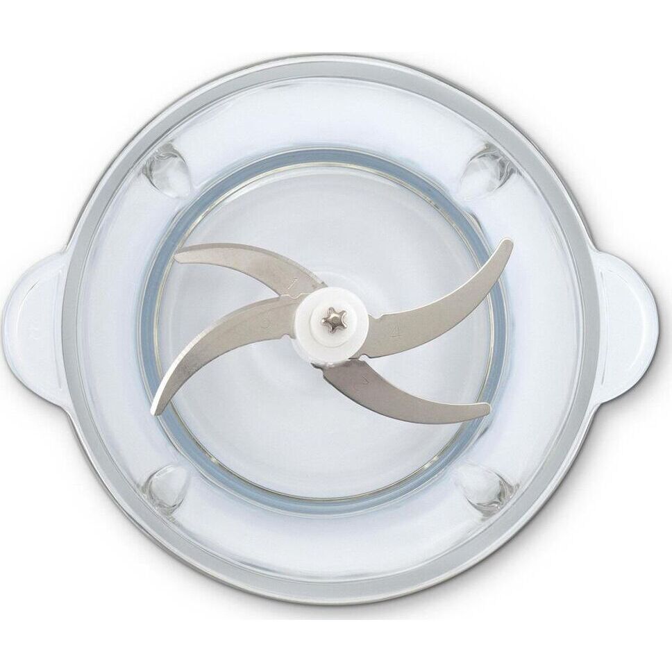 Мощность 500 Вт Емкость 1,5 л. Корпус – пластик +металл Чаша – пластик 2 скорости Двойной нож из нержавеющей стали Импульсный режим Насадка для чистки чеснока Прорезиненные ножки Количество вставок/дисков 1