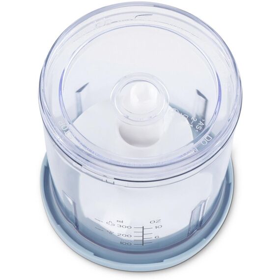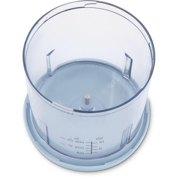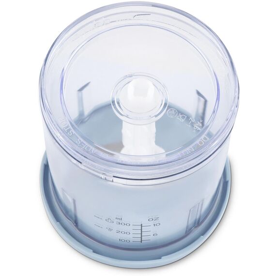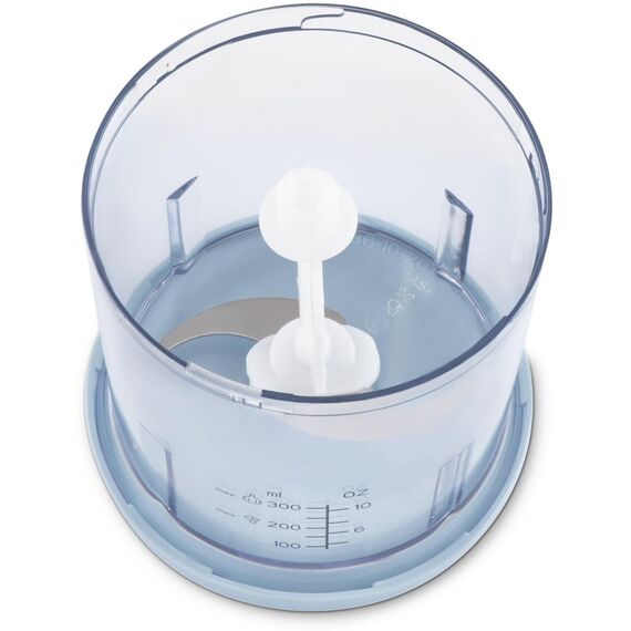 Мощность 350 Вт Емкость 0,8 л. Корпус – пластик +металл Чаша – пластик 1 скорость Двойной нож из нержавеющей стали Импульсный режим Насадка для чистки чеснока Прорезиненные ножки Количество вставок/дисков 2