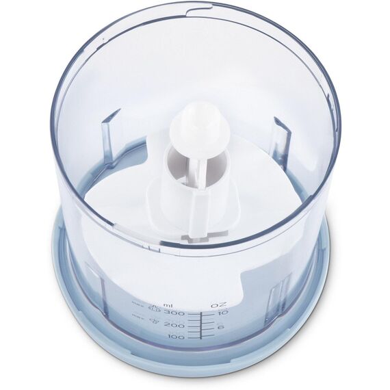 Мощность 350 Вт Емкость 0,8 л. Корпус – пластик +металл Чаша – пластик 1 скорость Двойной нож из нержавеющей стали Импульсный режим Насадка для чистки чеснока Прорезиненные ножки Количество вставок/дисков 2