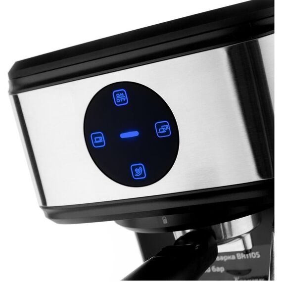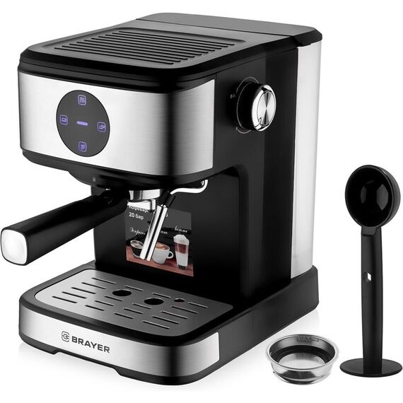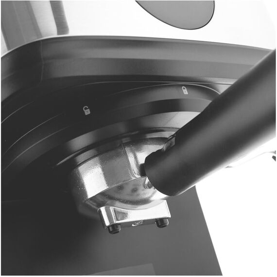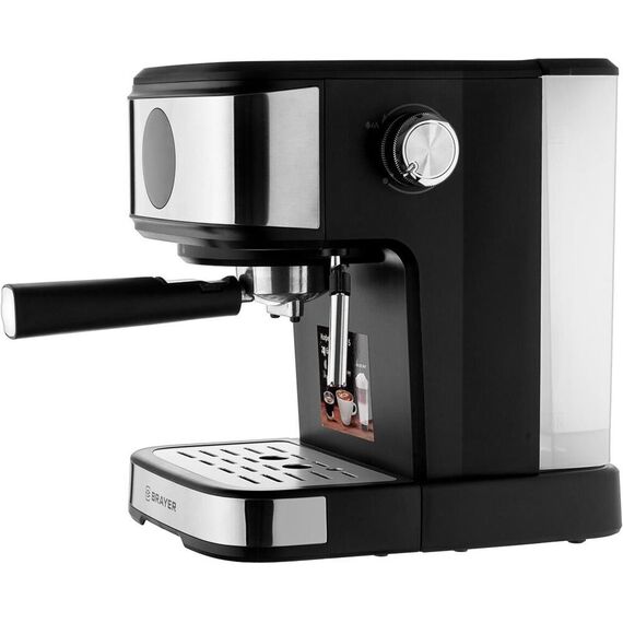 Кофеварка рожковая. Только молотый кофе, Мощность 800 Вт, Материал корпуса: Сталь/пластик, Питание от сети, Цвет: Черный, Капучинатор (ручной), Режимы: эспрессо, капучино.
