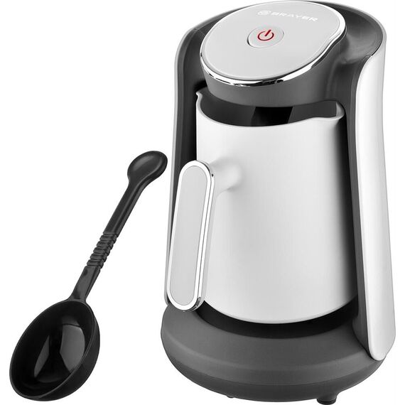 Для приготовления кофе по-турецки. Корпус из высококачественного пластика. Мощность 500 Вт. Объём 0,5 л. Время приготовления 3 минуты. Скрытый нагревательный элемент. Автоотключение при закипании. Автоотключение при отсутствии воды. Световой индикатор работы. Звуковой сигнал по окончании работы. Поворачивающийся на 360° корпус. Электропитание 220-240 В., ~50-60 Гц..