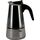 На 4 чашки. Нерж. сталь. Ручка и кнопка из нейлона (не нагреваются). Предохранительный клапан давления. Можно использ-ть на газ. плитах.Гейзер состоит из нижней емкости для воды, спец. сита-фильтра для кофе и верхнего чайничка для уже готового напитка.