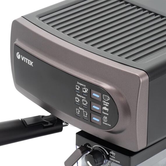 Кофеварка рожковая. Мощность: 1238 Вт, Давление помпы: 15 Бар, Тип кофе: молотый, Функции: подача пара, настройка размера порций, настройка крепости кофе, Встроено: капучинатор, Материал корпуса: пластик. Цвет: