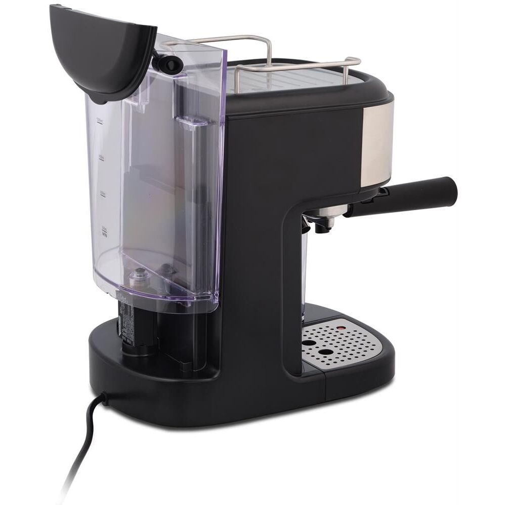 Кофеварка рожковая. Мощность: 1250 вт, Давление помпы: 15 бар, Съемный резервуар для воды: 1,5 литра, Итальянская помпа фирмы Ulka, Кофеварка с термоблоком обеспечит безупречный вкус напитка, быстроту приготовления, уменьшить затраты на электроэнергию, Капучинатор, Индикатор уровня воды, Индикация включения, Подогрев чашек, Приготовление капучино, Приготовление эспрессо, Съемный лоток для сбора капель, Вращающийся фильтродержатель, Особенности: Уникальный фильтр для приготовления эспрессо с густой пенкой, Тип используемого кофе: молотый, Цвет: Черный/серебро
