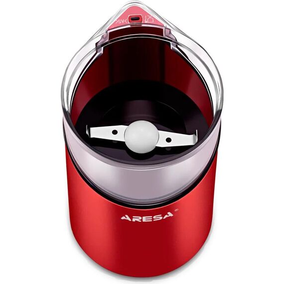 ARESA AR-3606 Мощность: 180 Вт Вместимость контейнера для зёрен: 50 г Прозрачная крышка Защита от случайного включения Нож из нержавеющей стали Эргономичный дизайн Прорезиненный пластиковый корпус