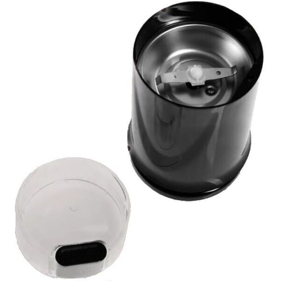 Кофемолка Мощность: 300 Вт. Объем: 70 г. Управление: механическое. Ножи из нержавеющей стали. Отсек для хранения шнура. Кнопка включения. Стильный дизайн. Сеть: 220-240 В, 50\ Гц.