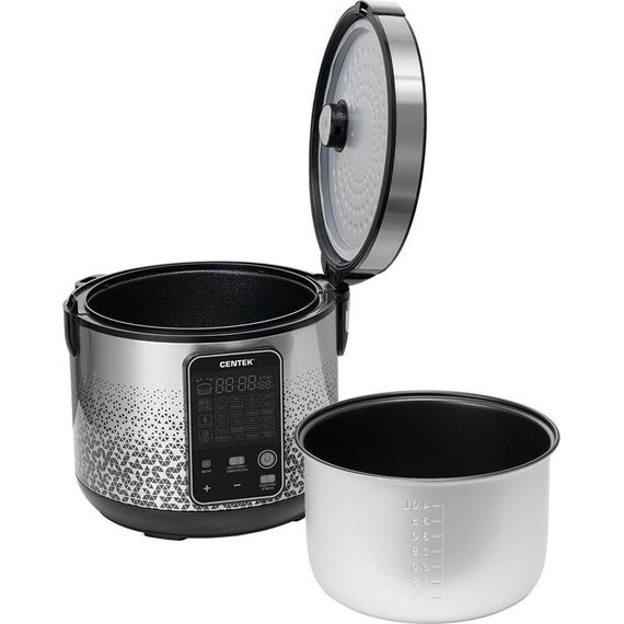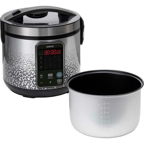 Мультиварка Centek CT-1499 идеально впишется в интерьер вашей кухни и поможет быстро и легко готовить вкусные и полезные блюда. Чаша с антипригарным покрытием объемом 5 литров и компактный корпус мультиварки из металла и пластика просты в уходе. Прибор имеет 25 программ, что позволит выбрать оптимальный режим приготовления для каждого блюда. Вы сможете приготовить в мультиварке детское питание, кашу, суп, йогурт, потушить или пожарить овощи и мясо или испечь пирог. Мультиварка Centek CT-1499 оснащена электронным управлением, благодаря чему вы легко установите необходимую программу. Функция «Мультиповар» позволяет устанавливать время и температуру приготовления того или иного блюда вручную. Также есть таймер отсрочки старта продолжительностью до 24 часов