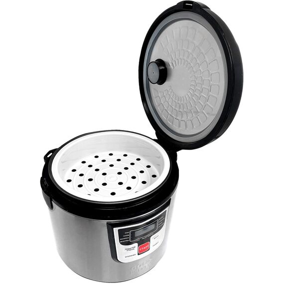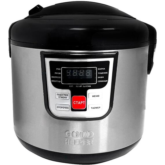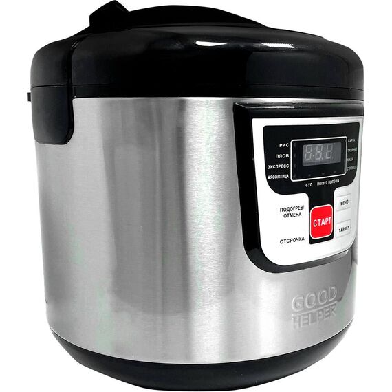 11 программ и предустановок; Имеет функции отложенного запуска и подогрева пищи; Индикация стадии приготовления блюд; Чаша с антипригарным покрытием; Облицовка корпуса из нерж. стали; Режим поддержания тепла; Таймер с LED-индикацией; Аксессуары в комплекте (ложечка, мерный стакан, приспособление для готовки на пару); Объем чаши — 5 литров; Мощность — 900 Вт, 220-240 V * 50 Hz.
