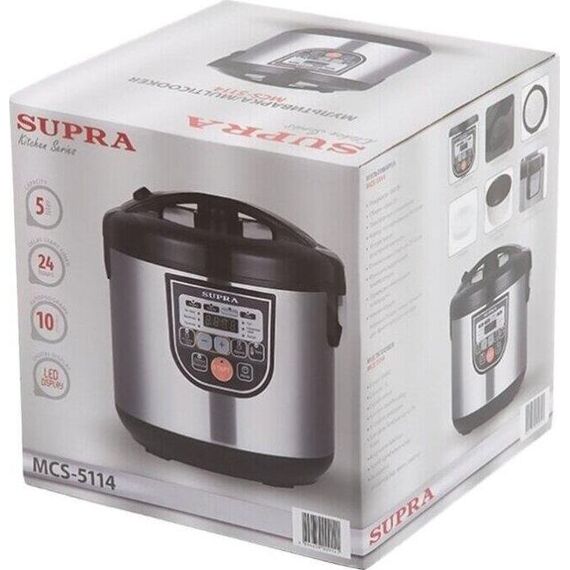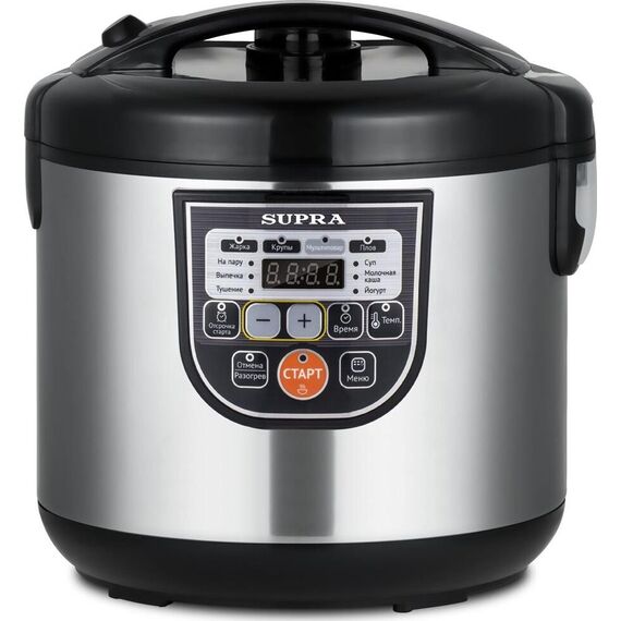 Объем чаши, л. 5. Покрытие чаши антипригарное. Тип управления электронное. Емкость для сбора конденсата есть. Количество автопрограмм 10. Дисплей. Материал корпуса нержавеющая сталь. Цвет серебристый. Потребляемая мощность, Вт. 860. Электропитание, в., Гц. 220-240, 50.