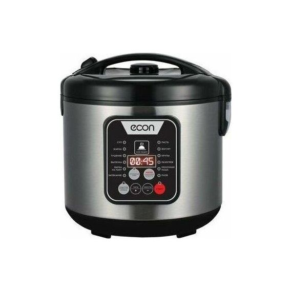 Мультиварка, мощность 860 ватт, объем чаши: 5 литров, объем чаши позволяет приготовить блюдо до 10 порций,45 автоматических программ c функцией мультиповар, антипригарное покрытие внутренней чаши – прочное и устойчивое к царапинам Daikin. Аксессуары: ложка, чаша для приготовления на пару, мерный стакан.