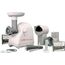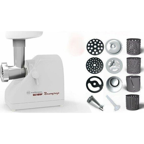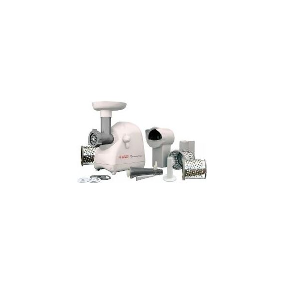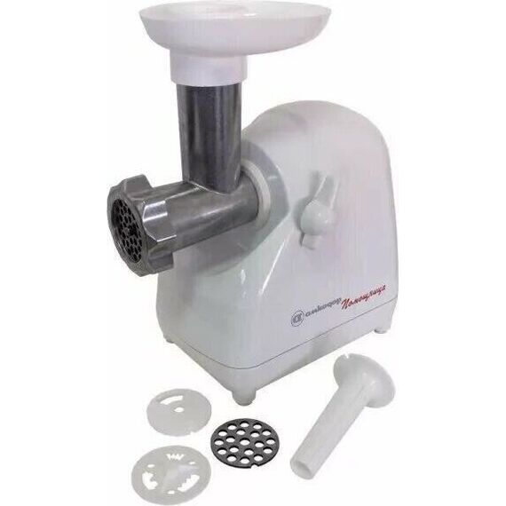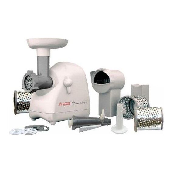 Белый мощность: 220 Вт система реверса: есть насадки: насадка-терка, насадка для приготовления колбас, насадка для нарезки печенья, насадка для шинковки, диск для фарша материал корпуса: пластик тип соковыжималки: шнековая особенности: мытье в ПММ, отсек для хранения насадок насадка-соковыжималка для мягких овощей, фруктов и ягод
