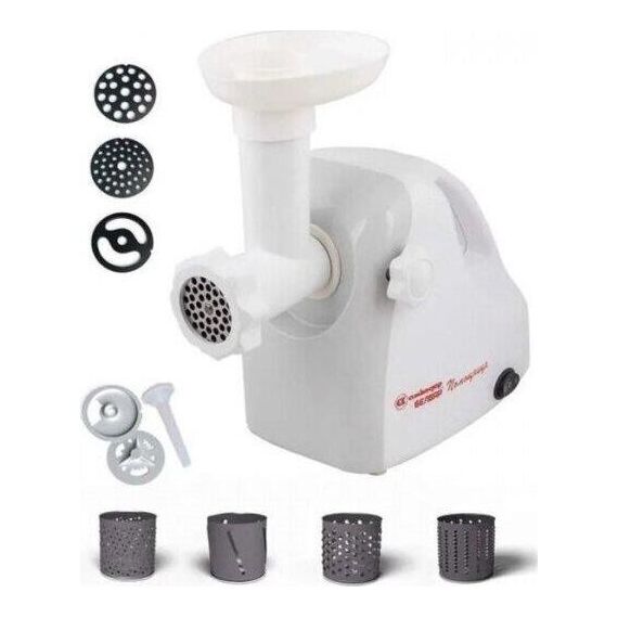 Электромясорубка КЭМ-П2У 303 (с ручкой) Пиковая мощность: 220Вт Номинальная мощность: 1500Вт Реверс: есть Цвет: бело-серый Решетки: 2 Шинковки: 4