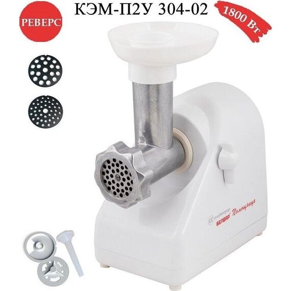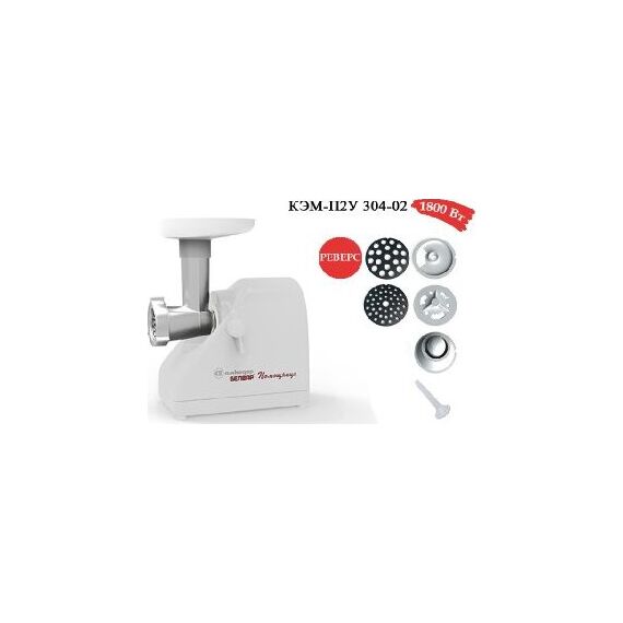 Электромясорубка КЭМ-П2У 304 Пиковая мощность: 300Вт Номинальная мощность: 1800Вт Реверс: есть Цвет: бело Решетки: 2 Тесто/колбасы: есть