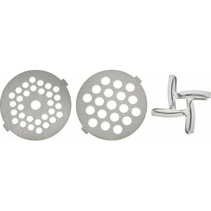 Номинальная потребляемая мощность 2000 Вт Производительность 1,7 кг/мин Электромясорубка предназначена для измельчения мяса и других видов продуктов, также используется для изготовления колбасок, лапши, спагетти, печенья, сока из мягких фруктов и овощей Подходит для обработки любого вида мяса Прочный металлический шнек увеличивает надежность и долговечность прибора Нож из высококачественной нержавеющей стали Две решетки для измельчения с отверстиями различного диаметра Две насадки КУББЕ Насадка для набивки колбас Удобный толкатель Противоскользящие прорезиненные ножки Функция РЕВЕРС обеспечивает простоту очистки шнека при забивании продуктами Автоматическое отключение при забивании горловины продуктами Система защиты двигателя от перегрева Цвет: черный с красным