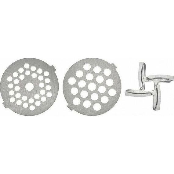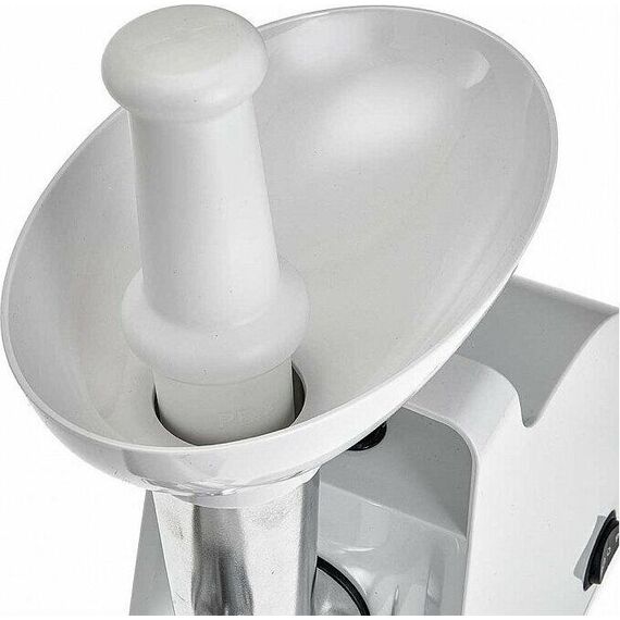 Максимальная мощность 2000 Вт Номинальная потребляемая мощность 300 Вт Производительность 1,8 кг/мин Описание Мясорубка электрическая предназначена для измельчения вареного или сырого мяса и подобных продуктов, а также приготовления печенья в бытовых и аналогичных условиях Подходит для обработки любого вида мяса Цвет: белый Прочный металлический шнек Металлический привод шнека увеличивает надежность и долговечность прибора Крестообразный нож из высококачественной нержавеющей стали Две решетки для измельчения с отверстиями разного диаметра - 5 и 7 мм 3 насадки-овощерезки: мелкая терка крупная терка шинковка Две насадки «КУББЕ» Насадка для набивки колбасок Удобный толкатель Противоскользящие прорезиненные ножки Функция РЕВЕРС обеспечивает простоту очистки шнека при забивании продуктами Система защиты двигателя от перегрева Упаковка: цветная коробка