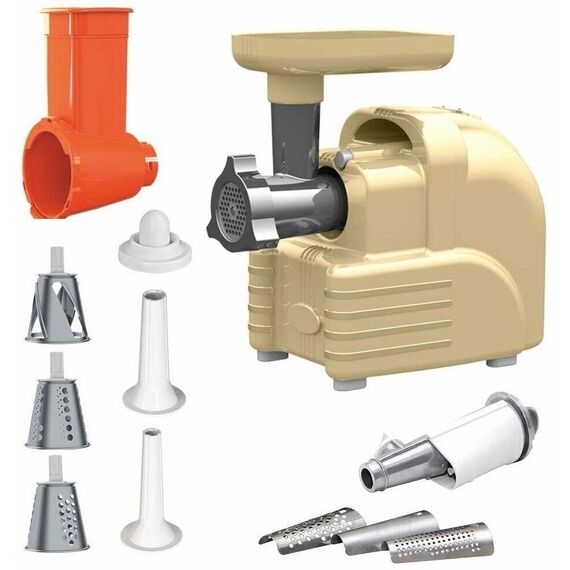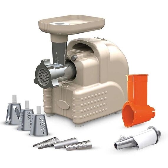 Электромясорубка в стиле ретро. Цвет бежевый. Номинальная потребляемая мощность 300Вт. Мощность 2000вт. Реверс. Габаритные размеры (ШxВxГ) 18,5/33/35 см. Производительность 4 кг/мин. Панель управления механическая. Длина провода 1,5м.
