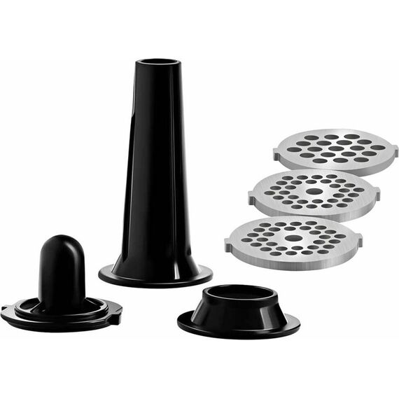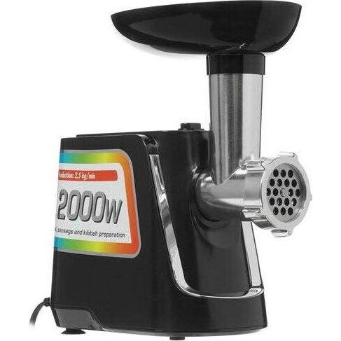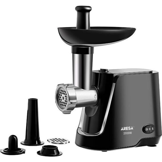 ARESA AR-2104 Мощность: 2000 Вт Производительность: 2,5 кг/мин Функция «Реверс» Система крепления «EasyFix» Система защиты двигателя от перегрузки Нескользящие ножки Пластиковый корпус Пластиковый загрузочный лоток Фиксирующая гайка Решётка для крупного помола (7 мм) Решётка для среднего помола (5 мм) Режущий нож Шнек Загрузочная горловина Загрузочный лоток Толкатель Насадка для приготовления колбасок/сосисок Насадка для приготовления кеббе
