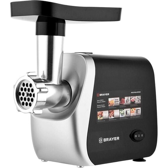 1608BR Мясорубка BRAYER, 2000 Вт, 3 диска, кеббе, колб, насад. для овощ, драники, реверс, 2 кг/мин