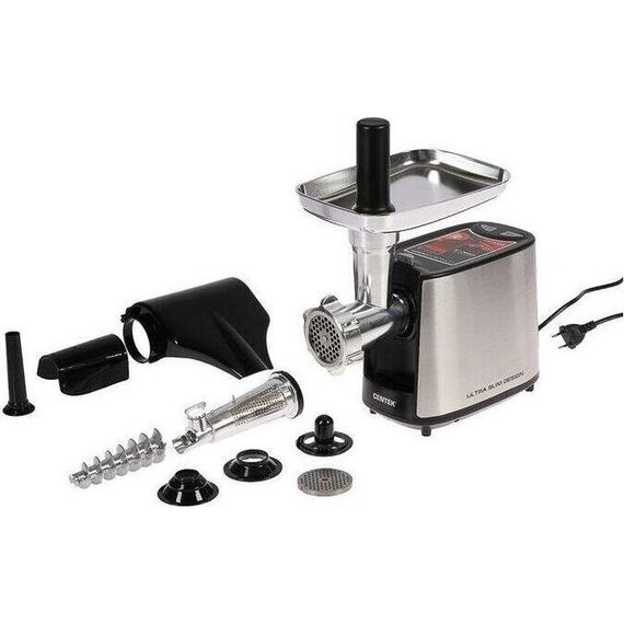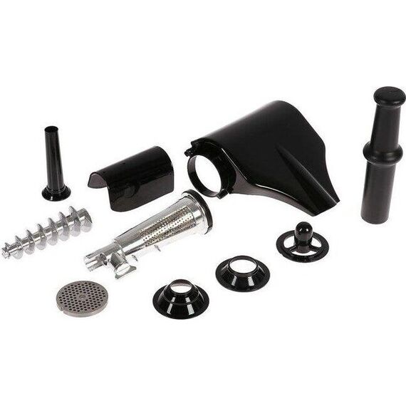 Мясорубка мощностью 2000 Вт; производительность 2 кг/мин; система реверса; насадки: для приготовления колбас, для соков, кеббе.