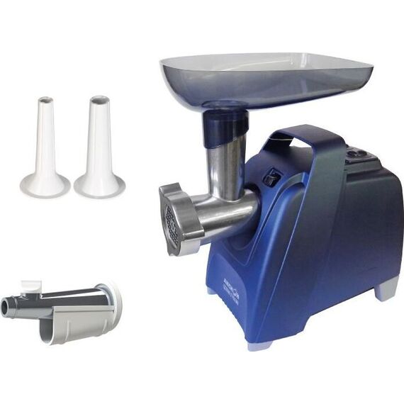 Номинальная потребляемая мощность 300 Вт Производительность 4 кг/мин Мощность 2000 Вт Двойная защита от перегрузки; Функция «реверс» для предотвращения наматывания жилок на шнек; Отсек в корпусе для шнура питания, хранения ножа и насадок; Особая заточка ножа и решетки увеличенной толщины из нержавеющей стали, обеспечивающие высокое качество фарша из всех видов мяса и других продуктов; До 30 минут непрерывной работы; 2 вида решеток для получения фарша разной консистенции - с диаметром отверстий 4,9 мм и 8,5 мм; Новая конусообразная конструкция шинковки для овощей; Высокое размещение шнековой камеры; Эргономичная гайка для удобной сборки/разборки мясорубки; Широкая ручка для переноски; Устойчивые нескользящие ножки для фиксации мясорубки на поверхности стола; Цвет темно-синий