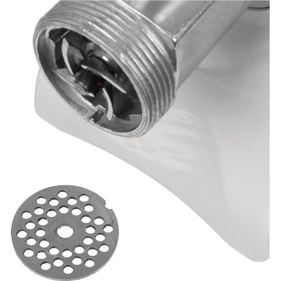 Мощность 1500Вт. Тип мясорубки шнековый. Производ-ть при пригот-и фарша не менее 35 кг/ч. Габариты: 245х151х213 мм.