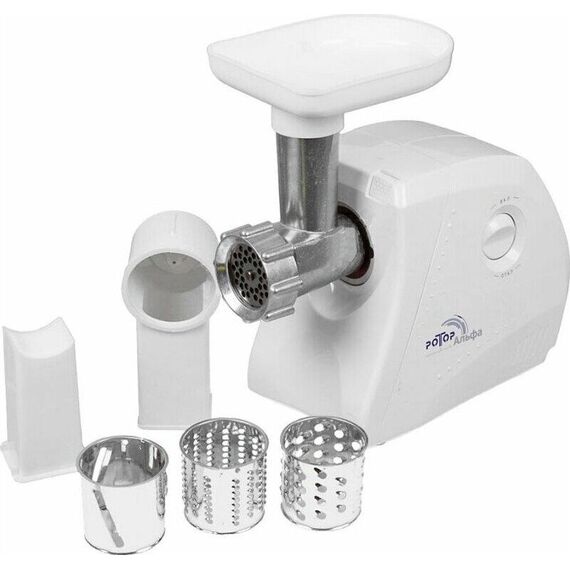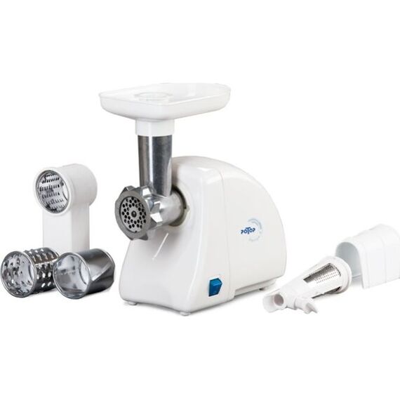 цвет белый, мощность: 700 Вт производительность: 0.6 кг/мин система реверса: есть насадки: насадка-терка, насадка для шинковки, диск для фарша материал корпуса: пластик особенности: прорезиненные ножки, мытье в ПММ