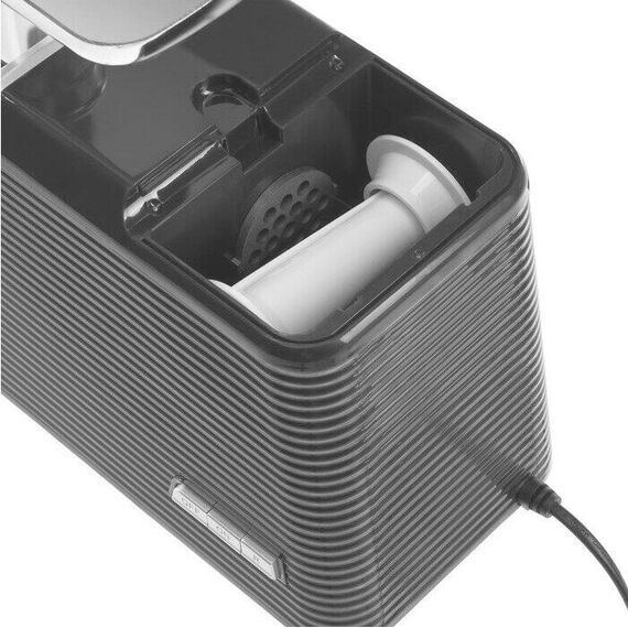 2000 Вт, функция реверс, корпус из эко-пластика, вместительный металл.лоток для продуктов, металл. шнек, толкатель, нож из нерж.стали, 2 металл диска для измельчения (5 мм, 7 мм), отсек для хранения насадок, отключение при перегреве. Аксессуары: насадка для кеббе и для приготовления сосисок. Цвет: черный