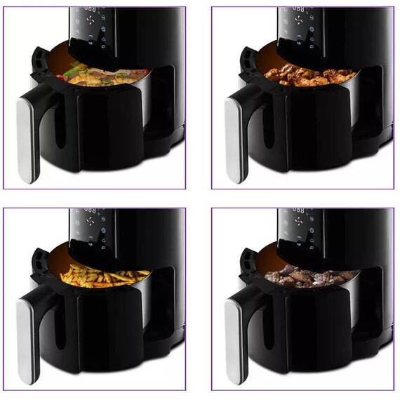Аэрогриль Kitfort КТ-2225 1000Вт черный Мощность 1000 Вт Длина шнура 0,7 м Объём 1,9 л Количество программ приготовления 6 + ручные настройки Регулировка температуры от 80 °C до 200 °C с шагом 5 °C Таймер до 60 мин, шаг 1 мин Управление сенсорное Размер устройства 210 х 275 х 284 мм Размер упаковки 268 х 268 х 317 мм Вес нетто 2,5 кг Вес брутто 3,0 кг